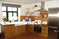 Zařízená kuchyň - lednička s mrazákem, el. trouba se sklokeramickou varnou deskou, rychlovarná konvice a mikrovlná trouba.